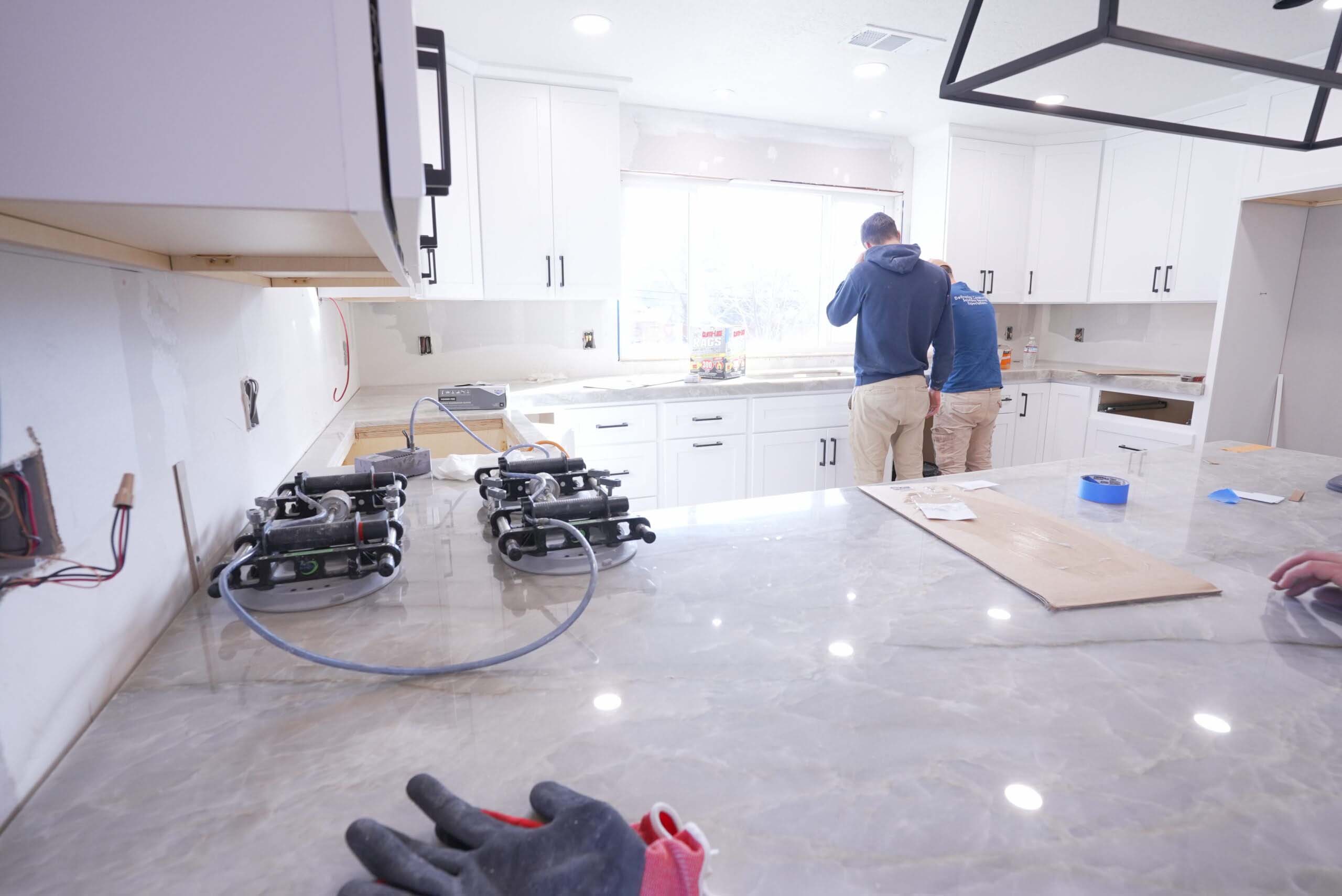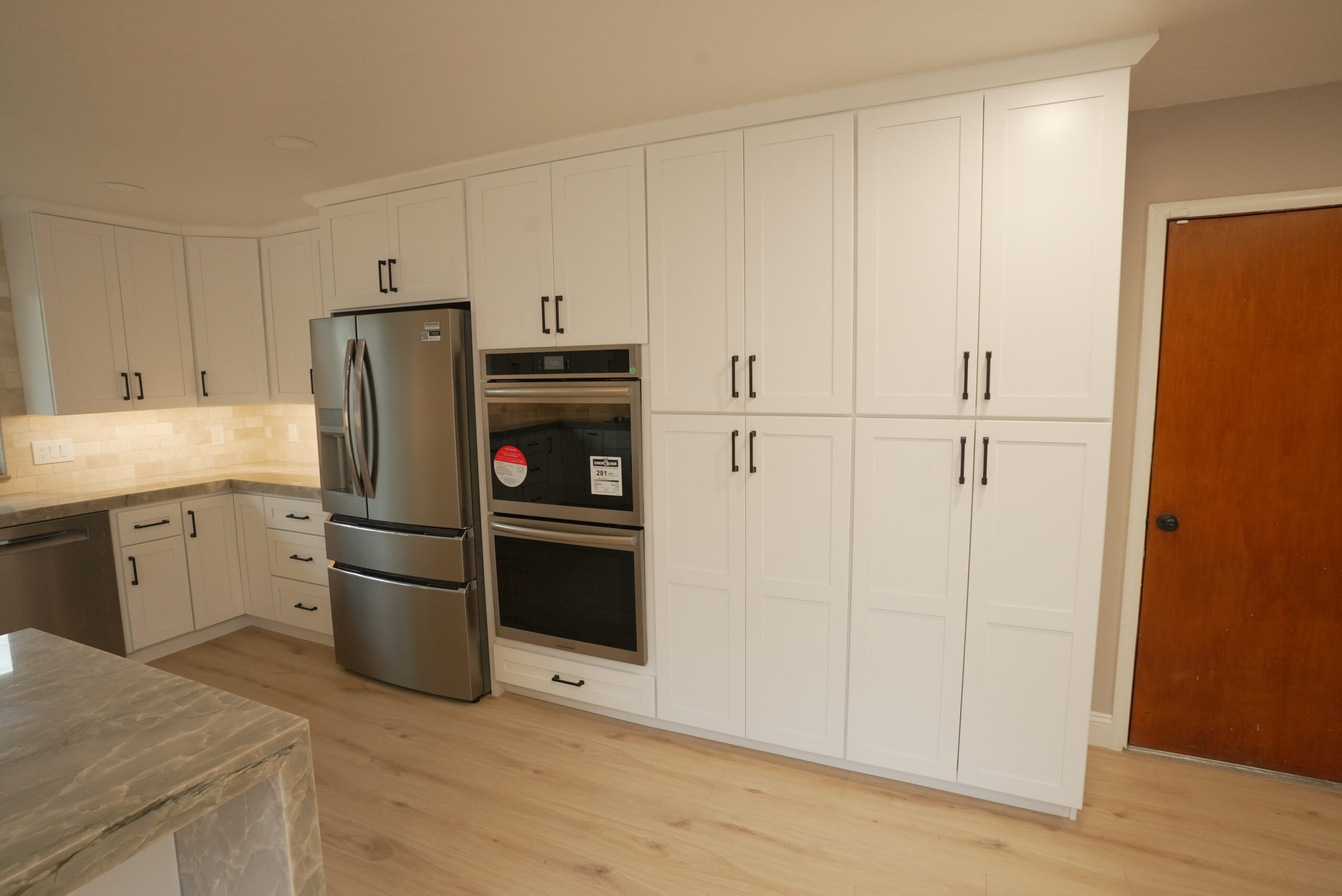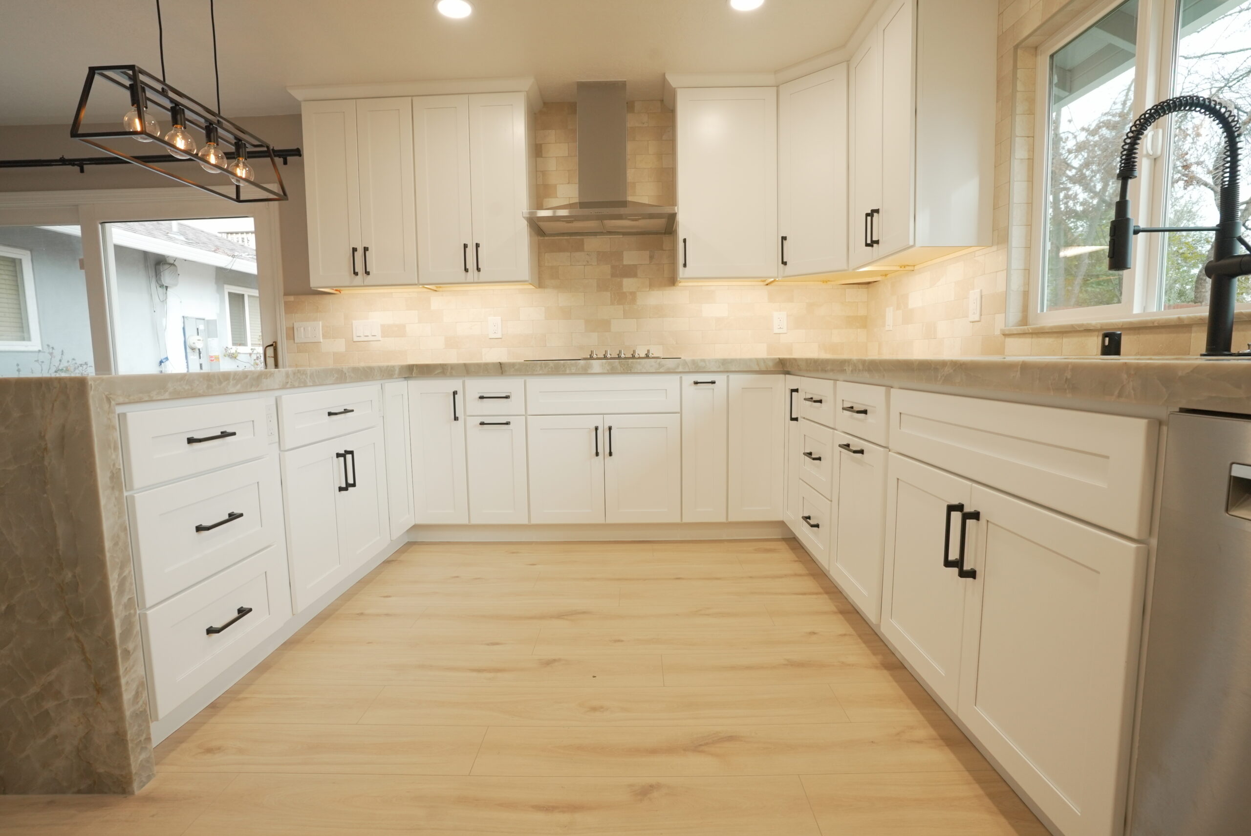 Beyond the kitchen, we were honored to remodel their garage, partially renovate their master bathroom, and install waterproof laminate flooring throughout most of the house.