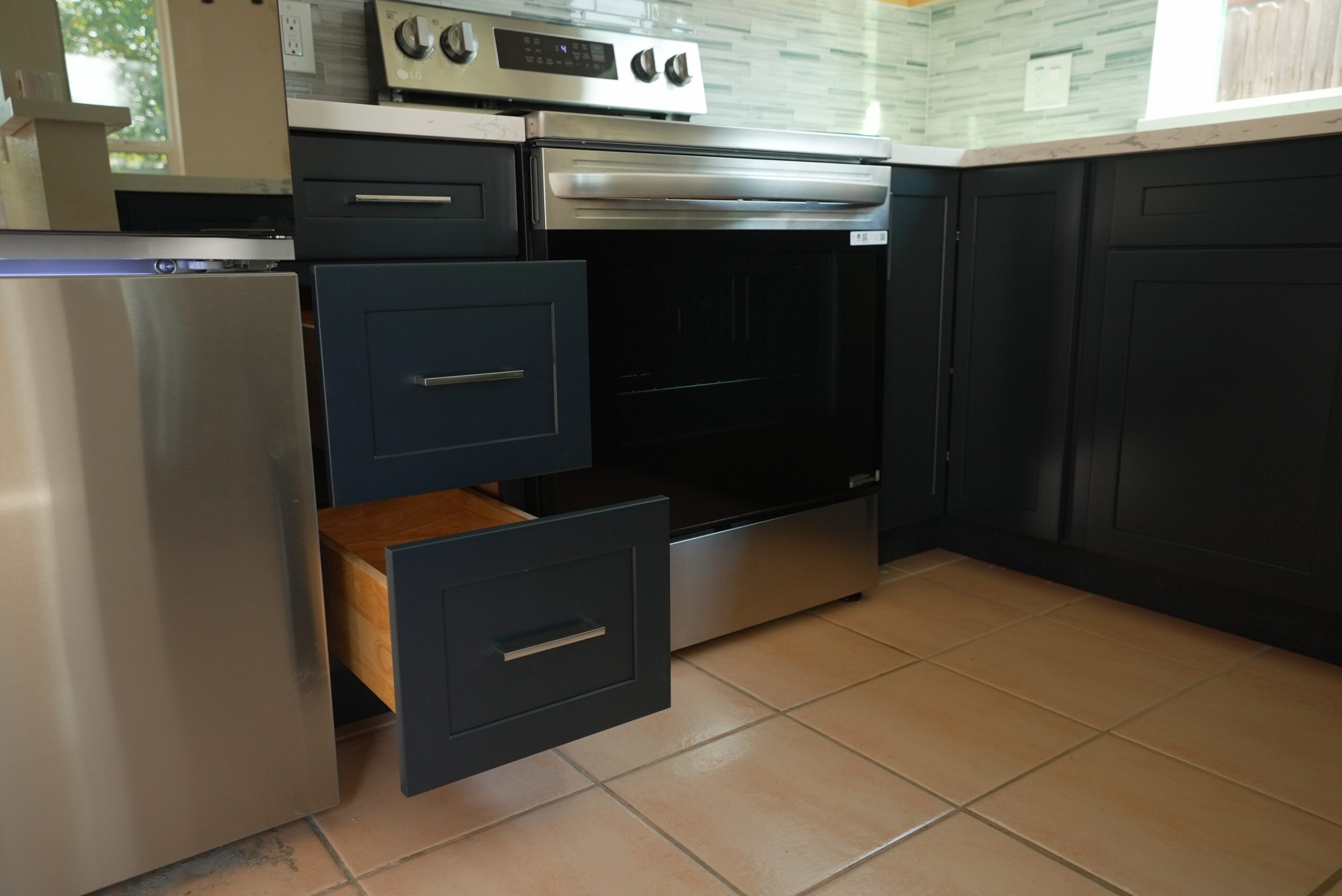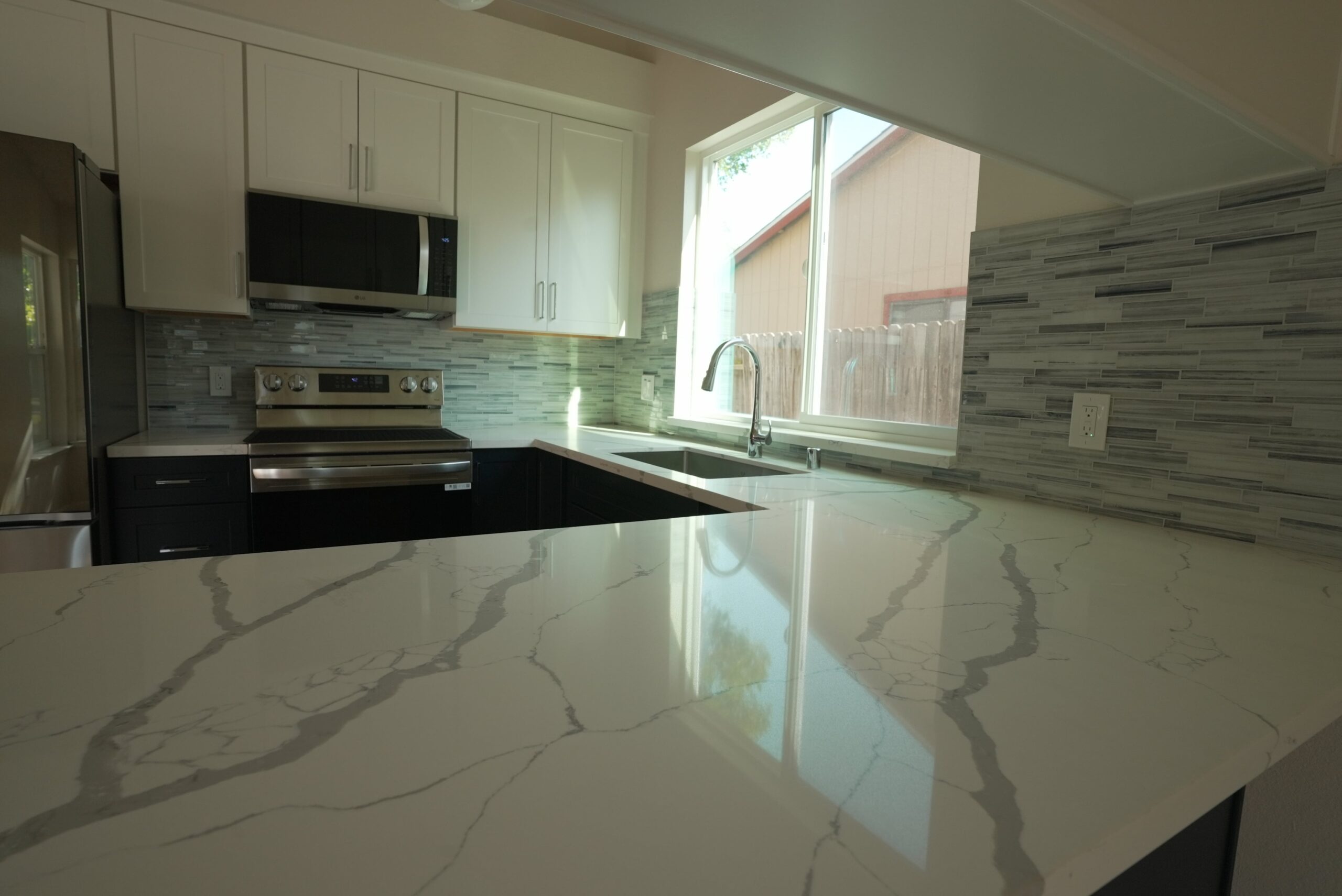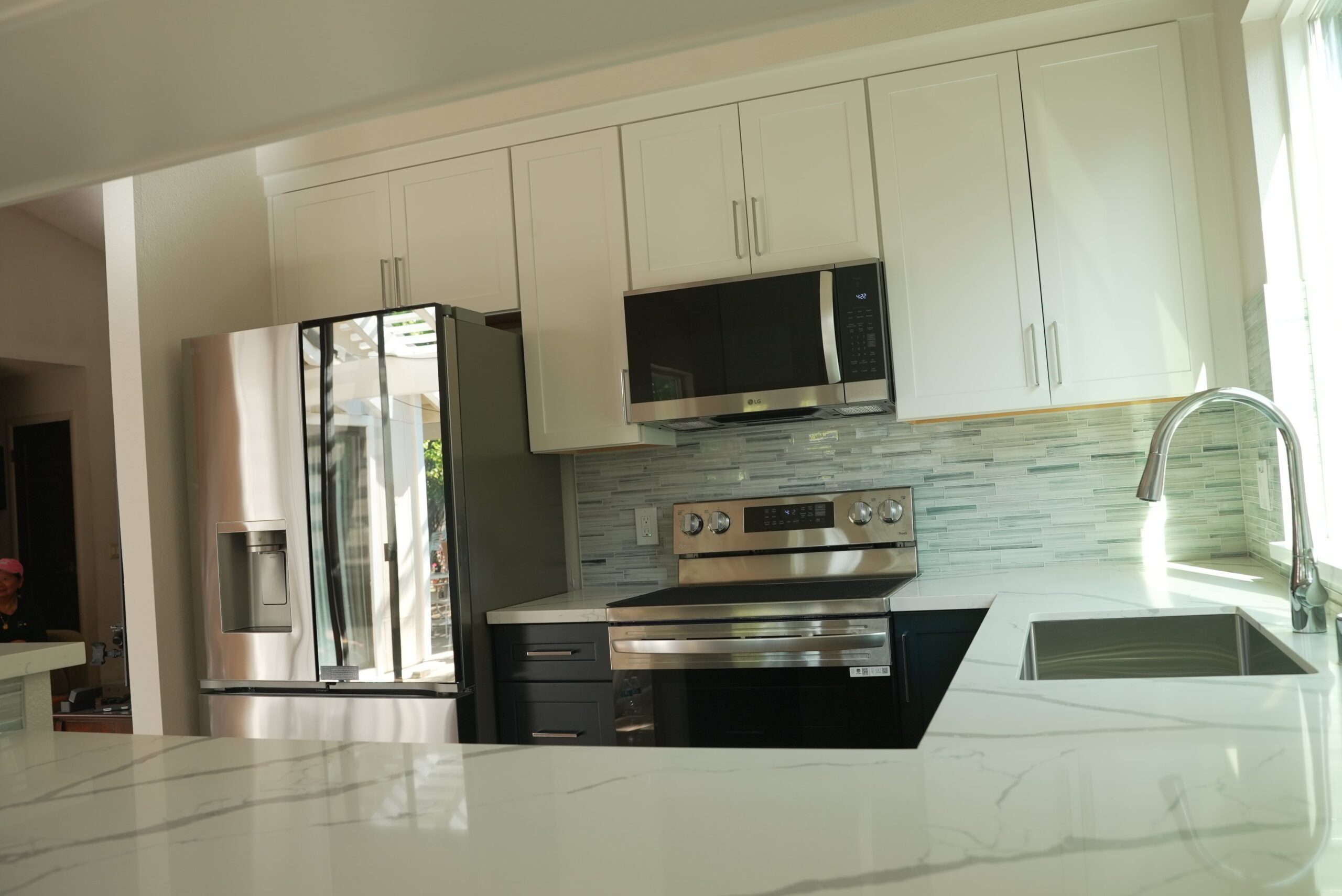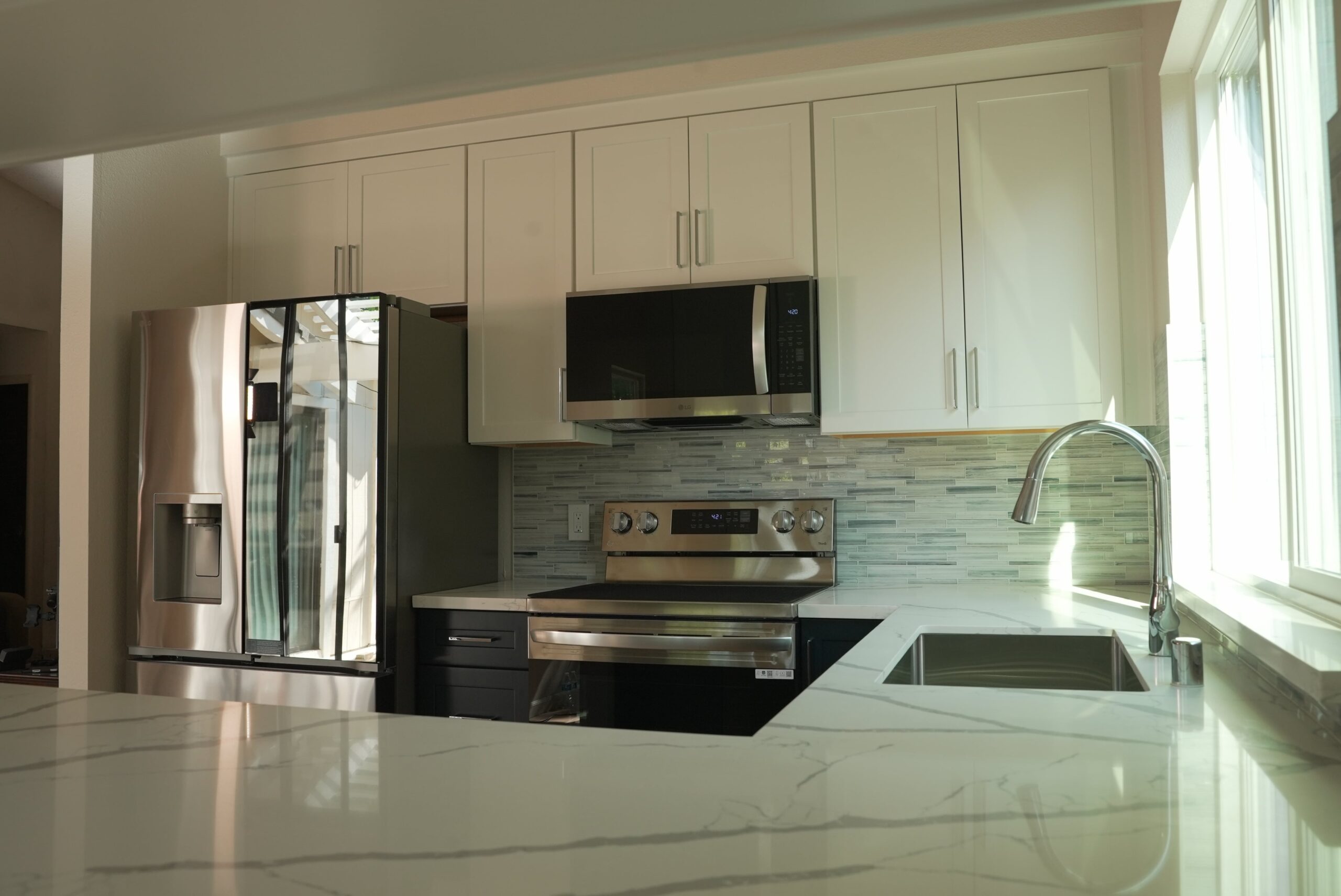 Compact yet contemporary kitchen in Sacramento that we designed for the Carrasco family. We promised the client that this remodeling would be done in two weeks, and we were able to keep our word on that. However, we discovered some dry rot after demo, and we got it fixed quickly and efficiently without any delay to the project. See their statement below; let them talk for us about the work we have done for them.
