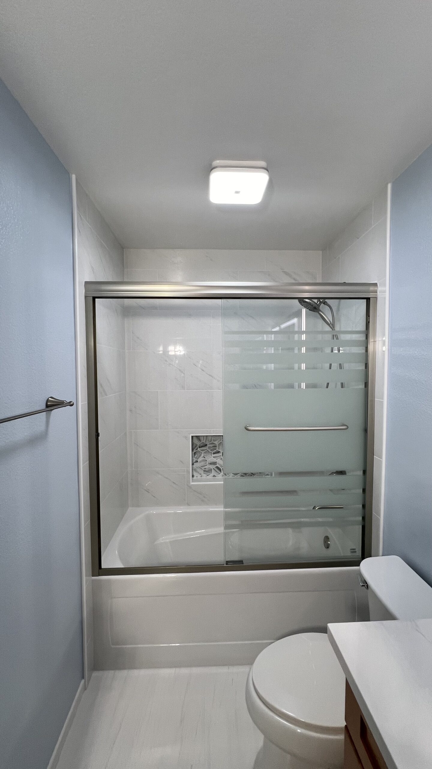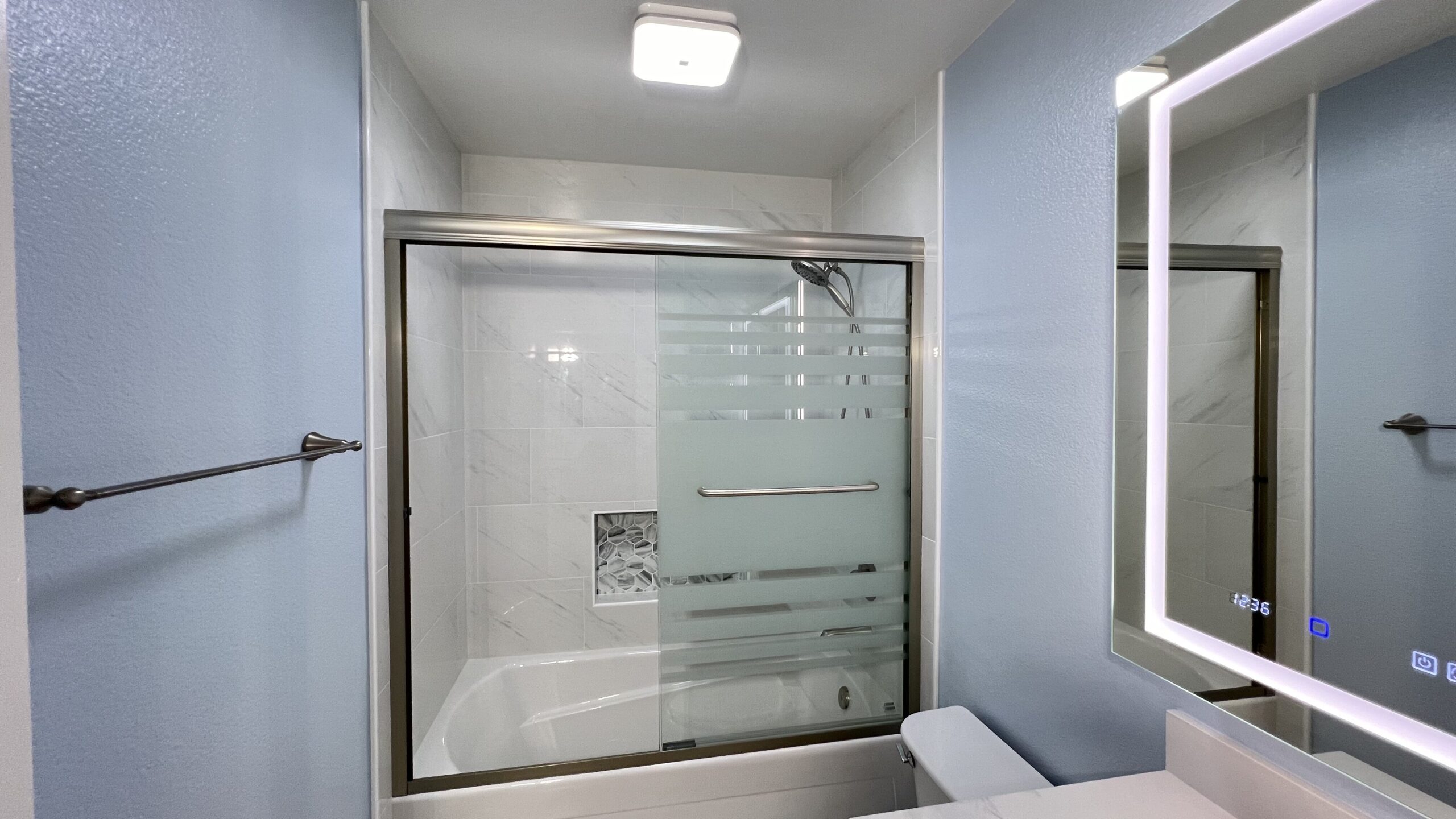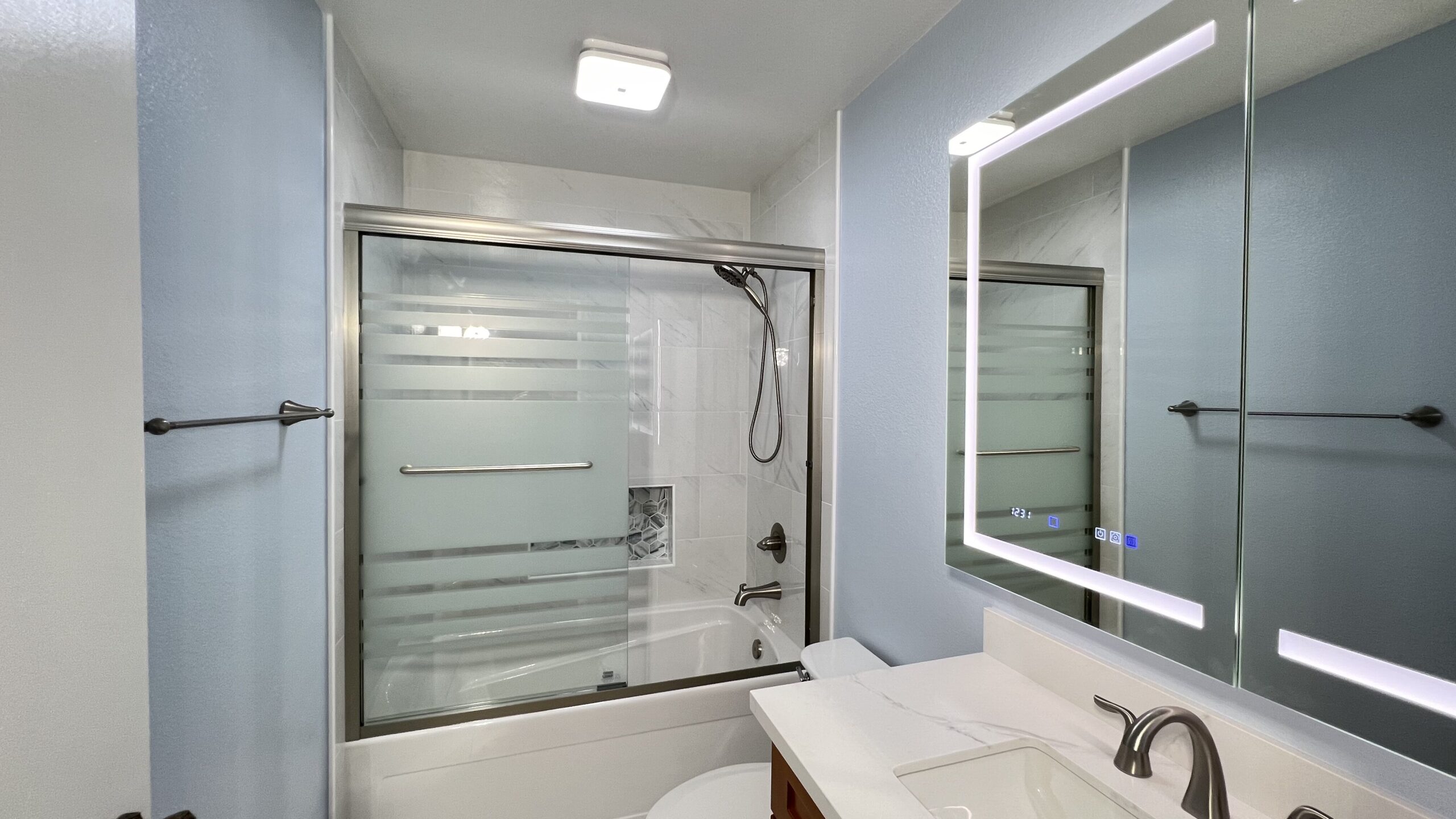 We also remodeled the secondary bathroom for John and Gundi in Citrus Heights. The focus was on enhancing functionality and updating the aesthetics to match their master bathroom.