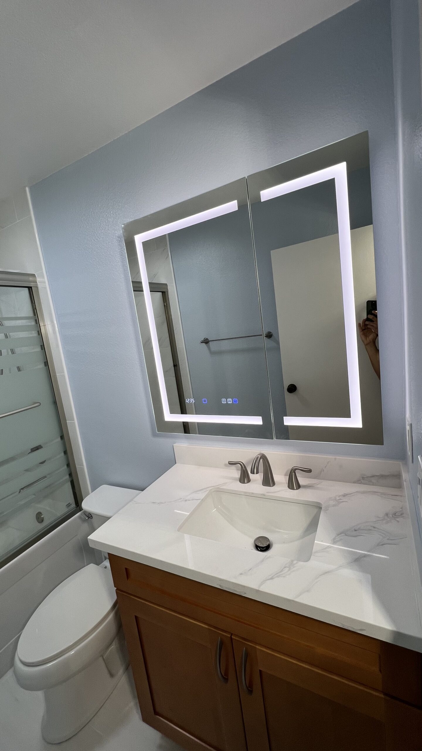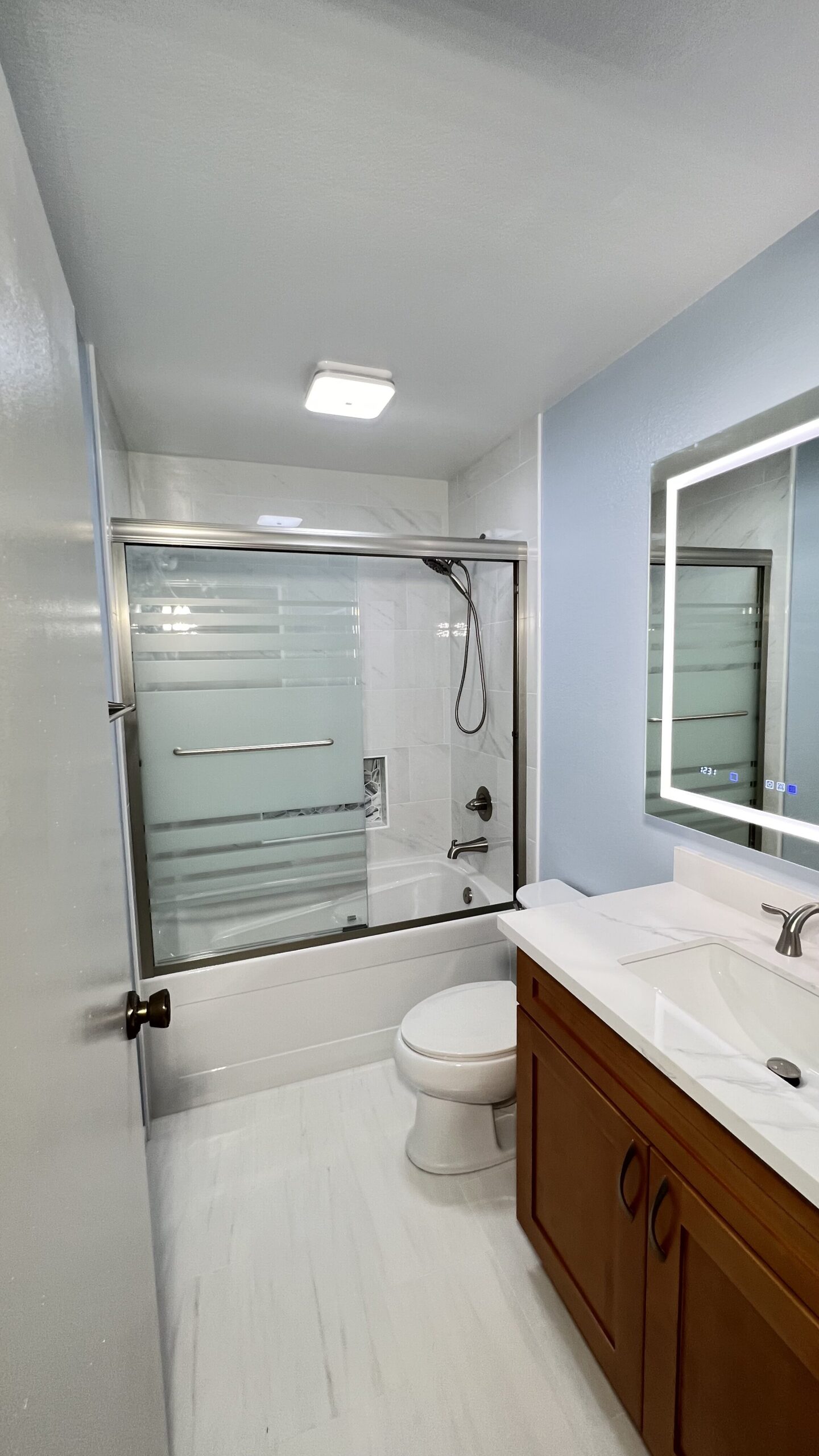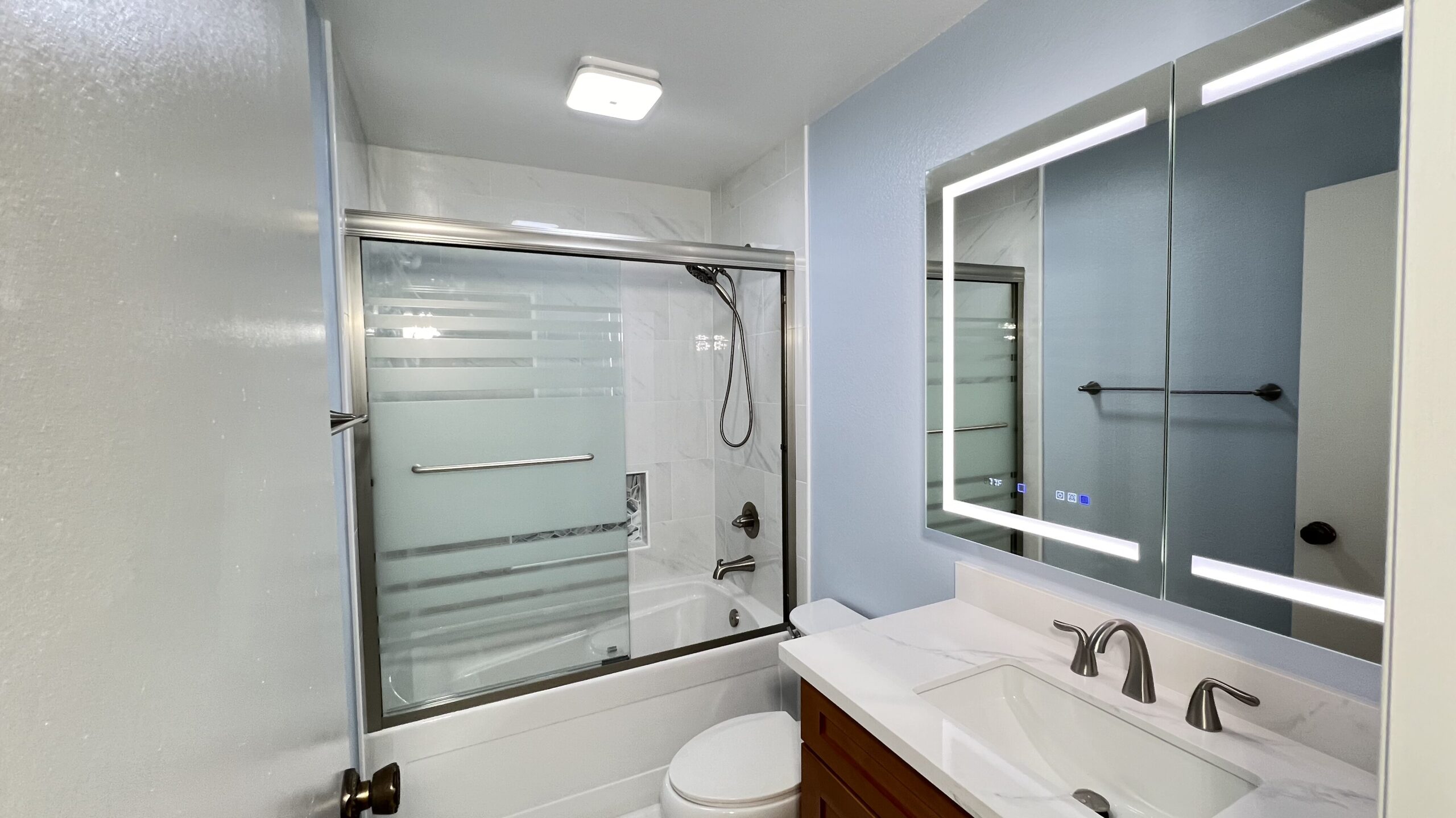 We also remodeled the secondary bathroom for John and Gundi in Citrus Heights. The focus was on enhancing functionality and updating the aesthetics to match their master bathroom.